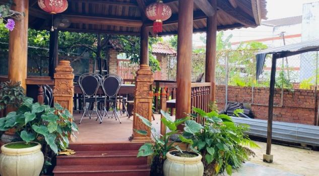 – Căn nhà thiết kế hiện đại phù hợp cho nhu cầu nghỉ dưỡng, có sân vườn, tiểu cảnh, chòi lục giác và chòi ngang để vui chơi giải trí, ăn nhậu,.. có cổng phụ.
