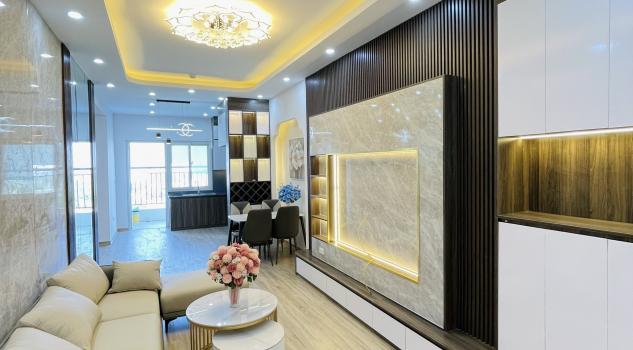 Nội thất bao gồm: tủ bếp trên dưới, bếp từ , hút mùi, sàn gỗ , Trần thạch cao, điều hòa 2 cái, 02 bộ giường tủ, 01( soffa, bàn ăn, nóng lạnh, tủ lạnh, máy giặt, bàn trang điểm).