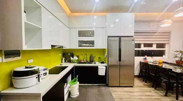 Nội thất mới như sàn gỗ, trần thạch cao, tivi 55inch, 02 điều hoà, máy giặt, tủ lạnh, tủ bếp trân dưới, bếp từ, hút mùi, 02 nóng lạnh, lọc nước, sopha+ bàn trà, đèn đọc sách, bộ bàn ăn nhập khẩu, vách+ kệ tivi, tủ giầy, tủ rượu trang trí, 1 tủ quần áo, 2 giường, bàn gương, cây xanh, tranh ảnh trang trí…