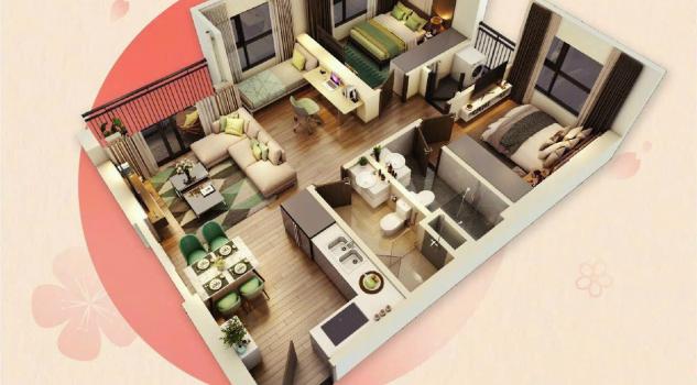 Sàn phòng khách/phòng ngủ: sàn gỗ công nghiệp