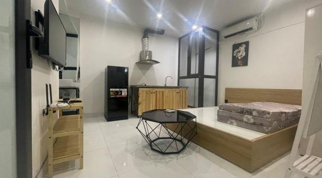 . - Thiết bị vệ sinh cao cấp, hệ thống đèn chiếu sáng, có đồng hồ điện nước riêng từng phòng. Hệ thống bàn bếp, giường, tủ quần áo, điều hòa, nóng lạnh, quạt trần đầy đủ.