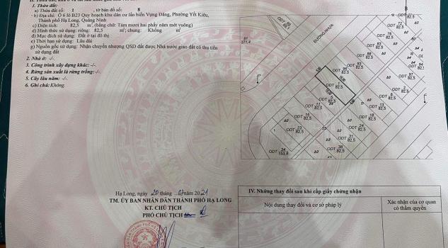 Bán đất ô 06 Lô B23 Vựng Đâng Yết Kiêu Hạ Long Quảng Ninh diện tích 82