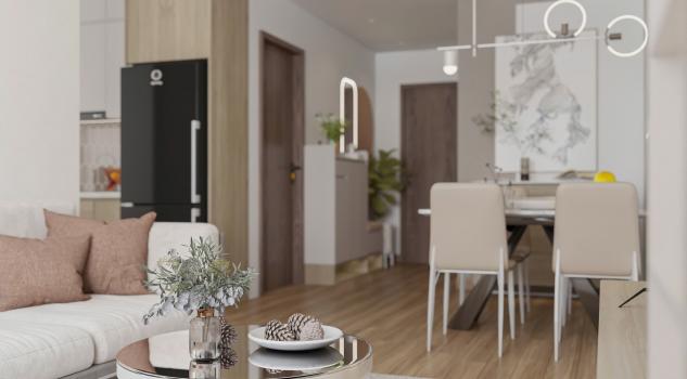 o Phòng khách: Kết nối ban công, sáng thoáng.