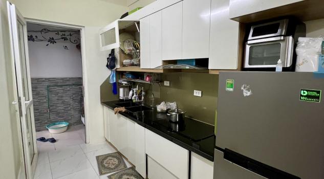 Căn hộ rộng 70 m2 tại tầng 6 tòa HH02B rất thoáng mát và rộng rãi. Cửa căn hộ hướng Tây , ban công hướng Đông nhìn ra Hồ điều hòa nên rất thoáng và nhiều ánh sáng. Nhà ở tâm huyết nên gia đình làm nội thất đồng bộ như sàn gỗ, trần thạch cao, bàn tủ bếp, sofa phòng khách, bàn ăn,… . Cư dân có thể chuyển tới ở ngay.