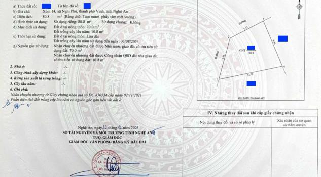 Chính chỉ gửi bán lô đất 2 mặt tiền, xóm 14, Nghi Phú.
