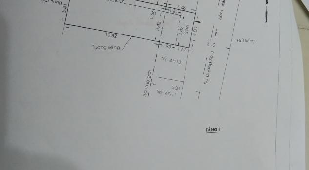- Diện tích 4.00m x 14.26m, diện tích đất 57.3m2, diện tích sàn 100.6m2, kết cấu 1 trệt 1 lầu gồm 1 phòng ngủ, 1wc, bếp, phòng khách.