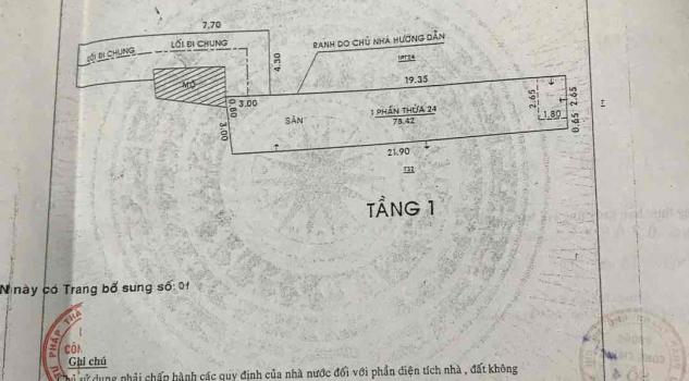 Diện tích 88 m2, có nhà cấp 4, thích hợp làm kho, ngăn phòng cho thuê hoặc xây mới, hẻm rộng 2,8m, xe hơi 7 chỗ vô được nhưng nếu đậu lại thì khó ra vào cho người khác. Hướng nhà chính Tây và Bắc đều được.
