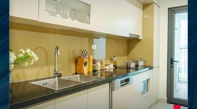 Nội thất bàn giao cao cấp gồm nóng lạnh, điều hòa, bếp, tủ bếp, sàn gỗ, trần thạch cao,.... từ các thương hiệu lớn Hafele, Toto, Samsung,Panasonic