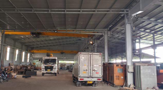 + Kho, xưởng có Diện tích 2.200m2 Nhà xưởng kết cấu khung thép zamil cao 7m, đầy đủ Nước, trạm điện 630kva. Xưởng có sẵn 2 cầu trục 10T và 5T và 1 cầu trục 3T. (Khách có thể dùng hoặc không dùng) Phù hợp các đơn vị sản xuất cơ khí, kho sắt, thép…